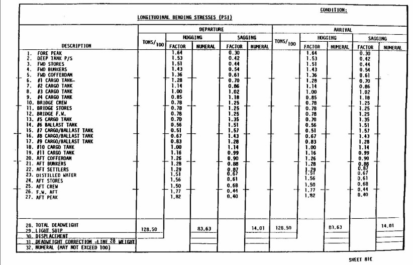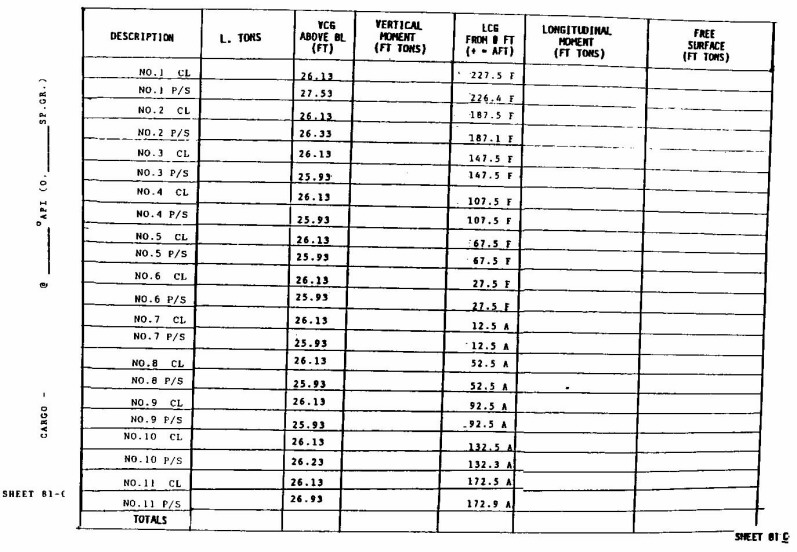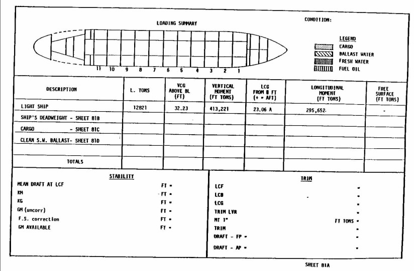 Blank Forms- Summary...Ship's Deadweight, Cargo Details, Ballast Details, Strength.
