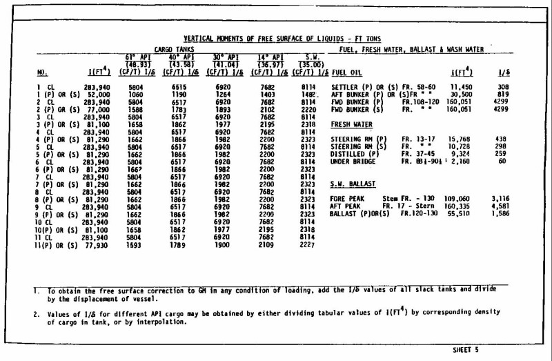 Vertical Moments of Free Surface for Liquids Ft. Tons.